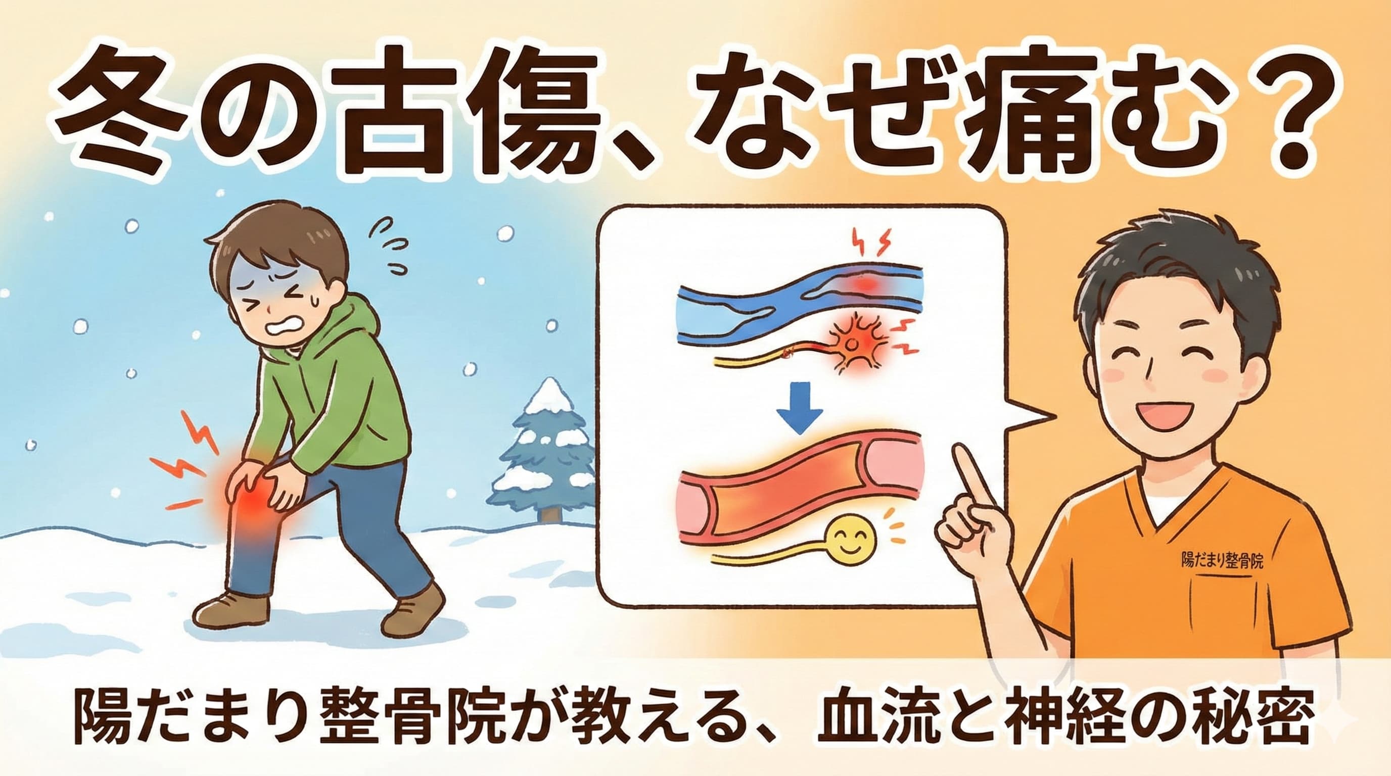 なぜ冬は「昔の怪我」が痛む?名古屋市昭和区の陽だまり整骨院が教える血流と神経のメカニズム