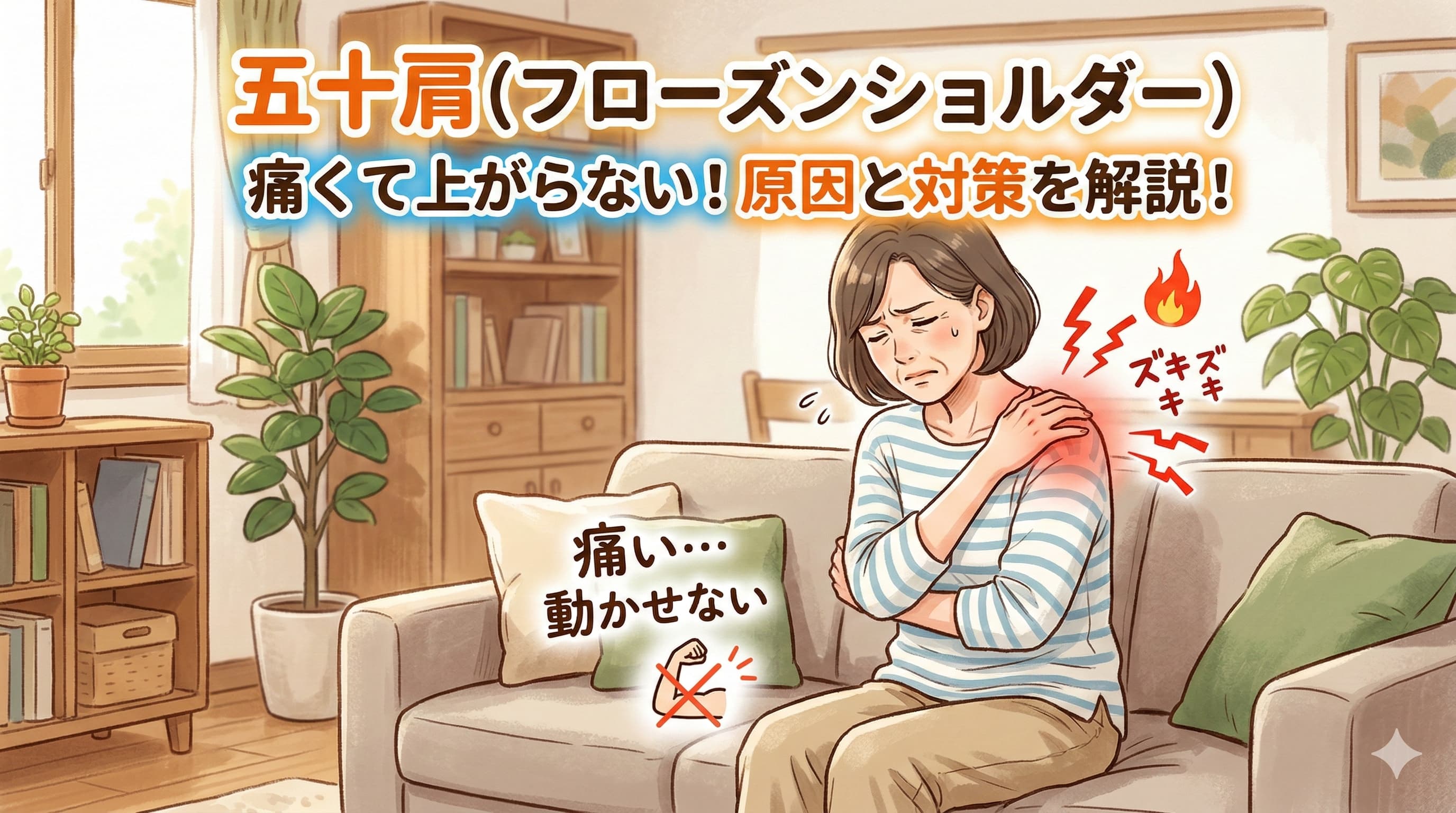 「高いところの棚に手が届かない」「洗濯物を干すのがつらい」「背中のファスナーが上げられない」 そんなお悩み、心当たりはありませんか? 腕を上げると痛む症状は、日常生活の質を大きく下げてしまいます。 この記事では、よくある