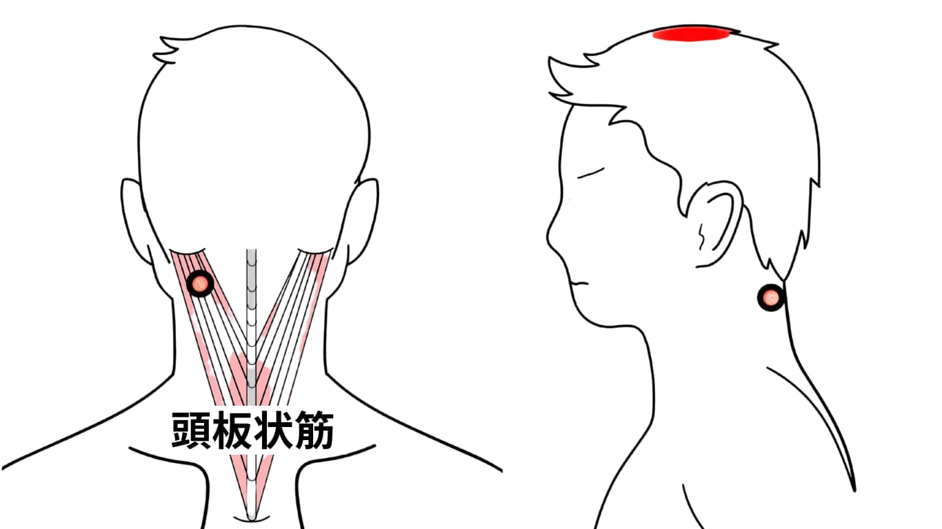 これにより、頭への血行が阻害されたり、末梢神経が圧迫されたりすることで、頭が締め付けられるような痛み(緊張型頭痛)が引き起こされることがあります。