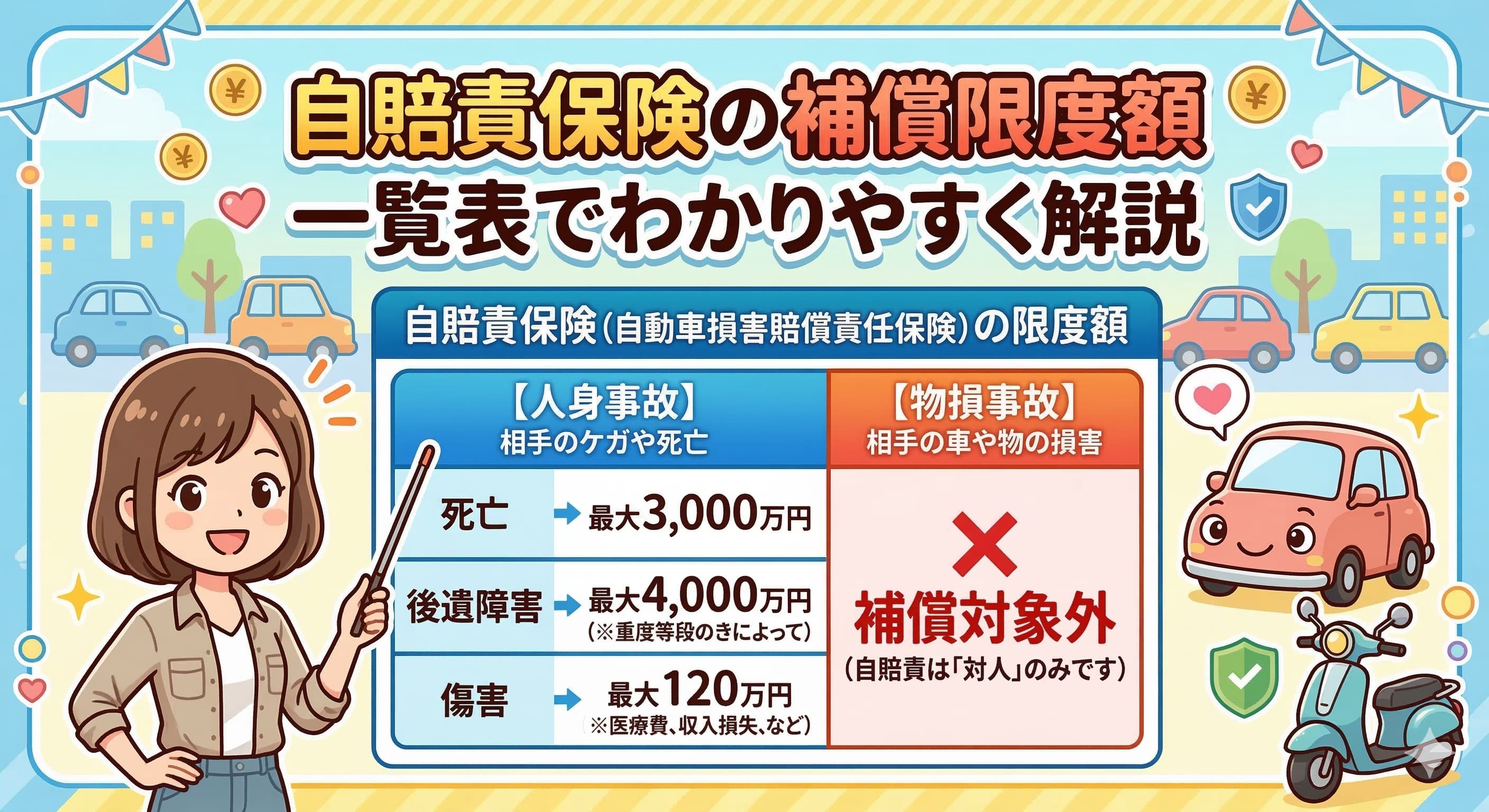 自賠責保険の補償限度額【一覧表】